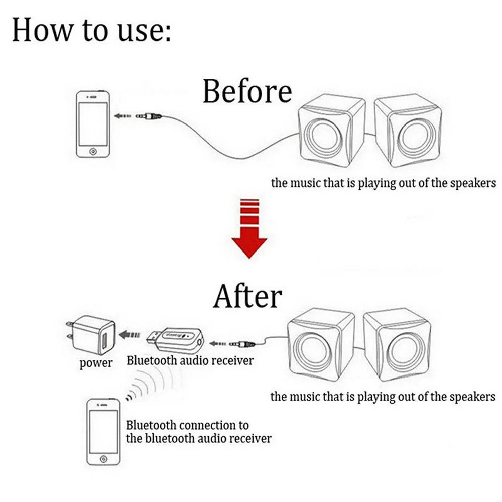 Wireless USB Bluetooth 3.5mm AUX Audio Stereo Music Home Car Receiver Adapter