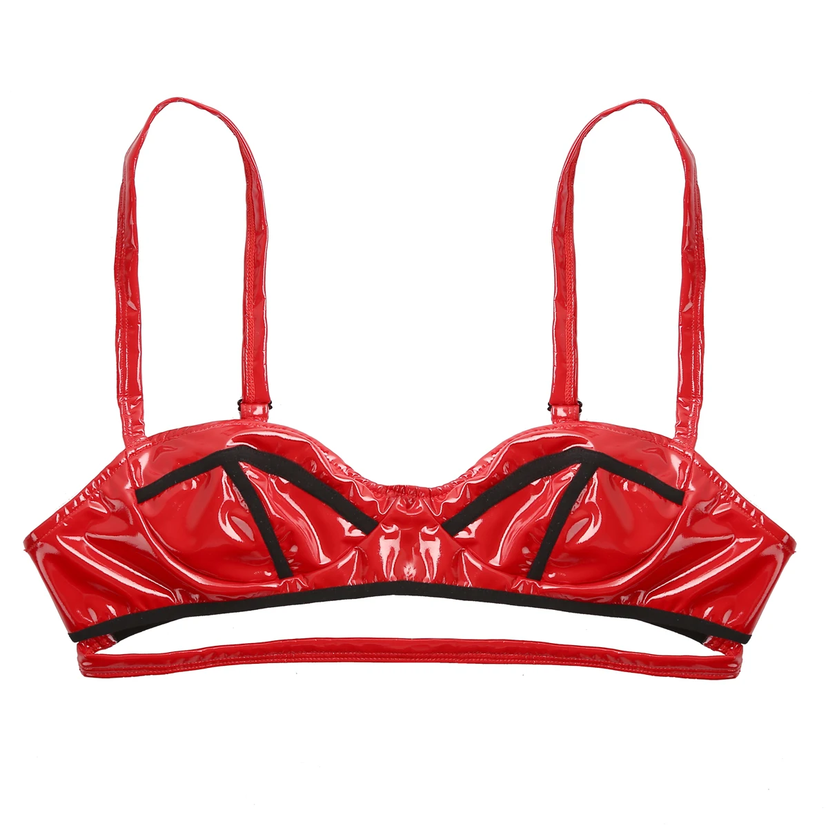 Женский бюстгальтер из лакированной кожи без косточек, без косточек, без подкладки.