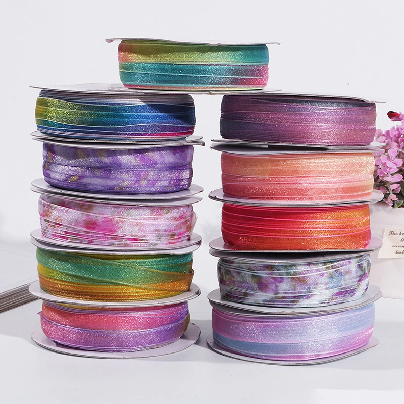 Цветная градиентная лента из органзы, 10 ярдов/партия, 10 мм