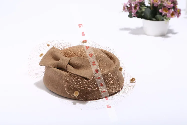 Береты, шапки для женщин, для невесты, элегантная шерсть, марля, бант, стюардесса, белые женские шапки Fedora, официальная женская шапка, Королевский стиль