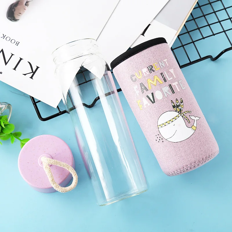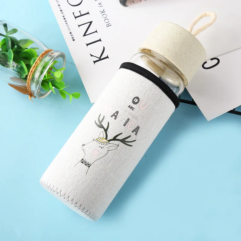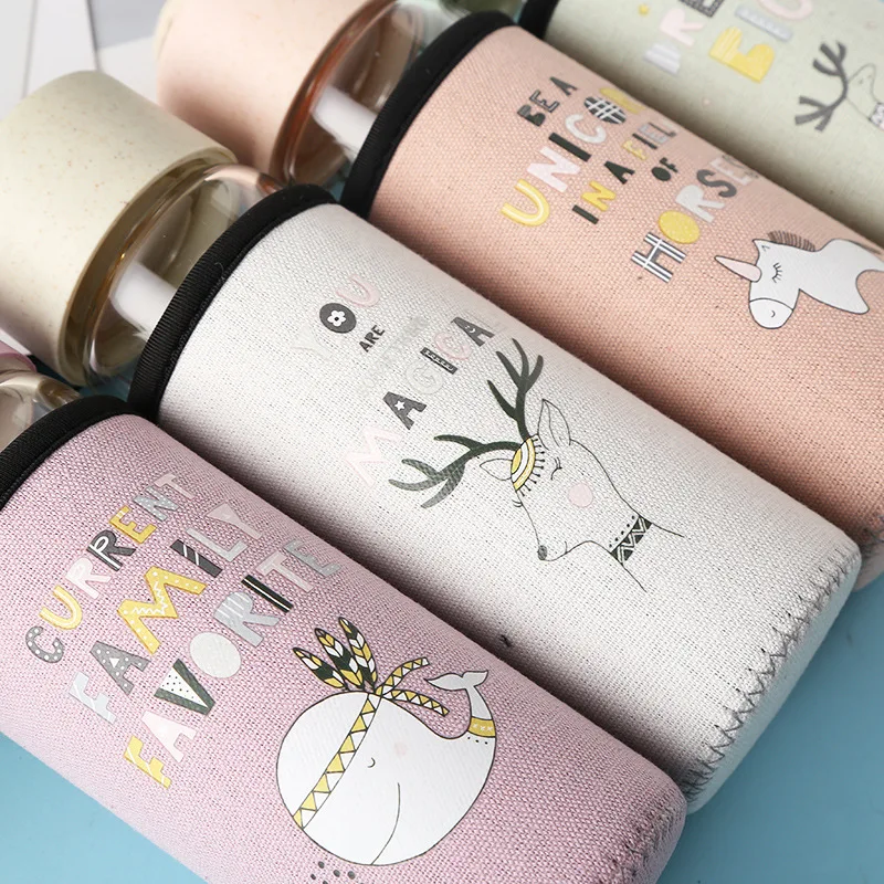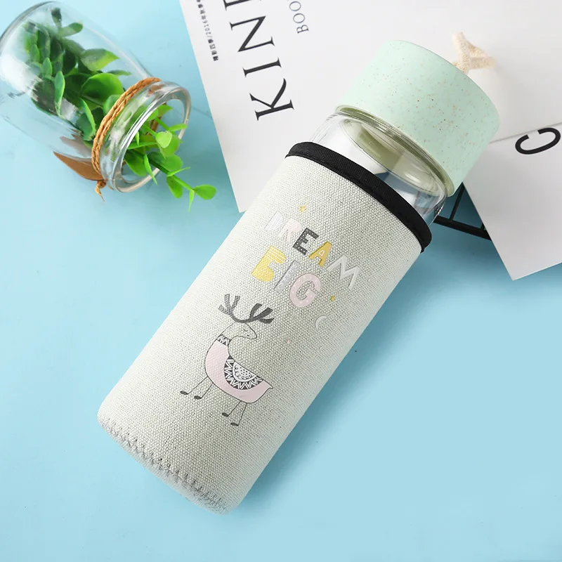 Новинка, 350 мл, милая стеклянная бутылка для воды, портативная прозрачная чашка для чая, стеклянная чашка с тканевым покрытием, для занятий спортом на открытом воздухе, для путешествий, молочный напиток, кофейные кружки