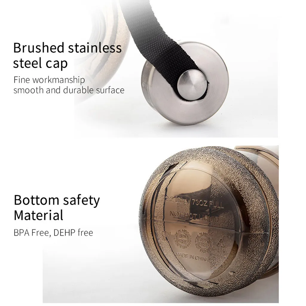 Gallon Water Bottle Fitness Workout with Time Marker Drink Large 73OZ Capacity Plastic Drinking Bottles Portable kettle