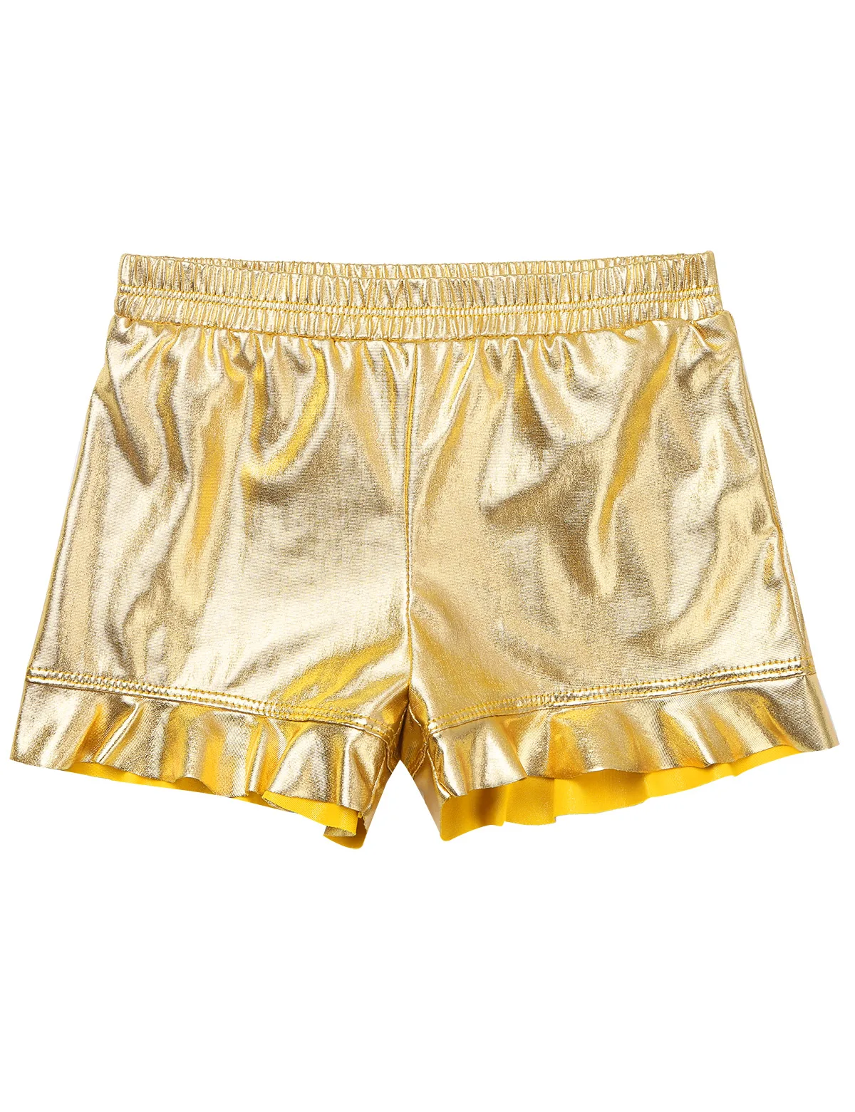 Металлический вид. Эластичная ткань, удобная и дышащая. Стильные шорты для ваших девочек.