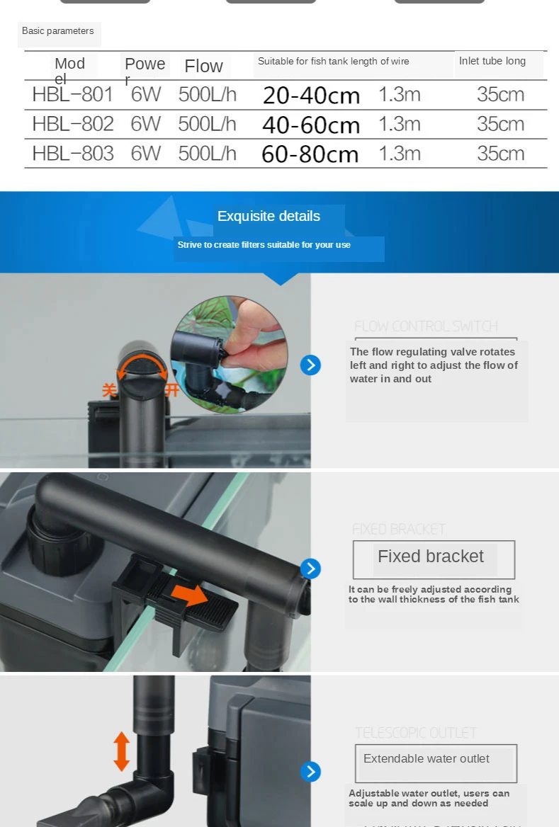 ◆Подходит для: аквариума 20-40 см (HBL-801), аквариума 40-60 см (HBL-802)