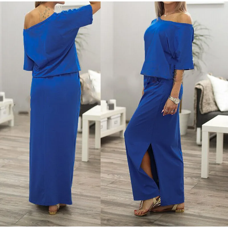 Женская одеждаБохо максиПлатье с короткими рукавамиРазрез на шее сбоку