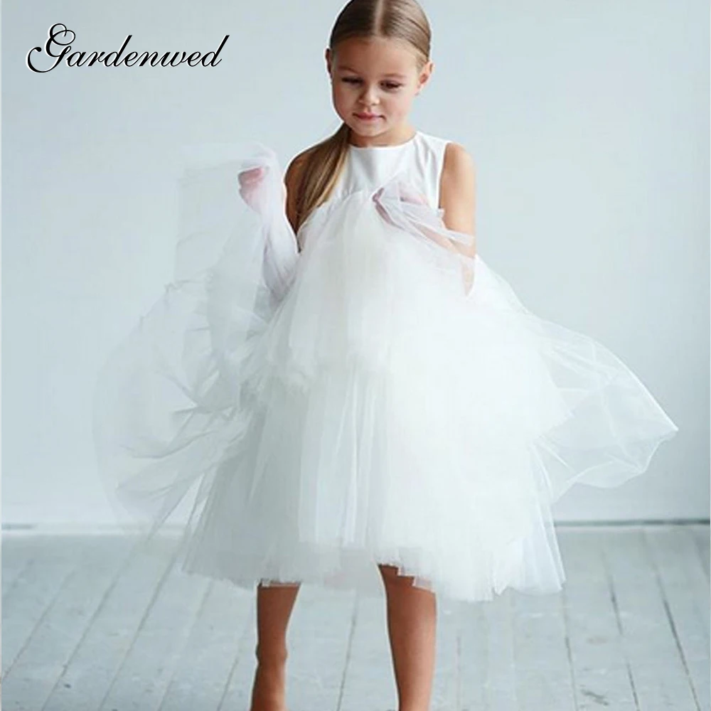 Кружевное платье с аппликацией в виде цветка для девочек на свадьбу Пышное