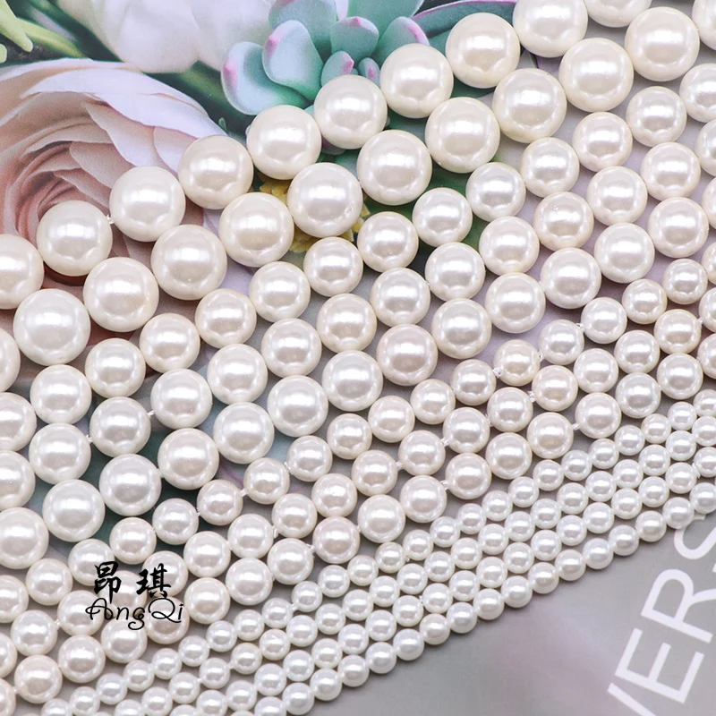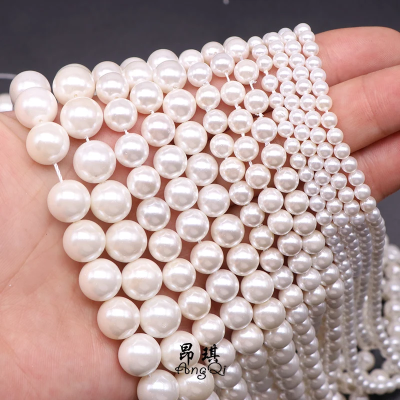 Круглые бусины с натуральным белым жемчугом в виде ракушек 2, 3, 4, 5, 6, 8, 10, 12 мм. Бусины из жемчуга для изготовления ювелирных украшений DIY очаровательные ожерелья