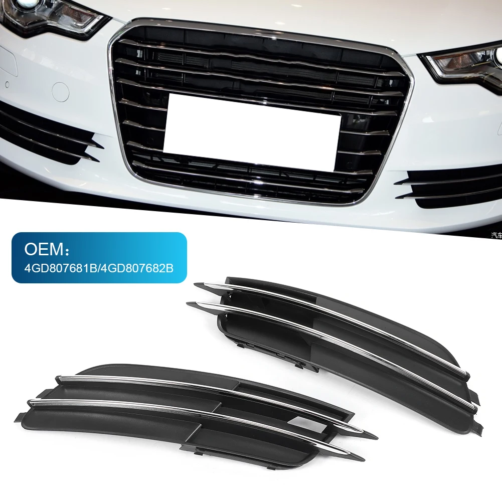 Pair Front Fog Light Frame Cover 4GD807681/4GD807682 Fit for Audi A6 C7 Sedan/Avant Pre‑Facelift 2012‑2015