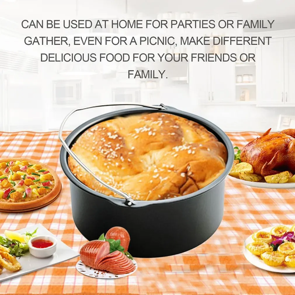 Особенности: 1. Высококачественные, без бисфенола материалы: корзина для торта и антипригарный лоток для пиццы изготовлены из углеродистой стали из нержавеющей стали, которая обладает многими отличными свойствами, такими как антипригарная, антикоррозийная, И долговечность. 2. Расширьте свои методы приготовления: с помощью многофункциональной Металлической Полки воздушной фритюрницы вы можете увеличить возможность и скорость приготовления! 3. Легко чистить: все аксессуары для воздушной фритюрницы безопасны для посудомоечной машины, долговечны и легко моются быстро. Описание: Идеально подходит для пирожных, шампуров, пиццы, печенья, Пирогов, куриных крыльев и т. д. Характеристики: Материал: углеродистая сталь из нержавеющей стали Цвет: черный Размер: 7 дюймов Посылка включает в себя: 1 * горшок 2 * рамки 1 * пластина 1 * силиконовый коврик