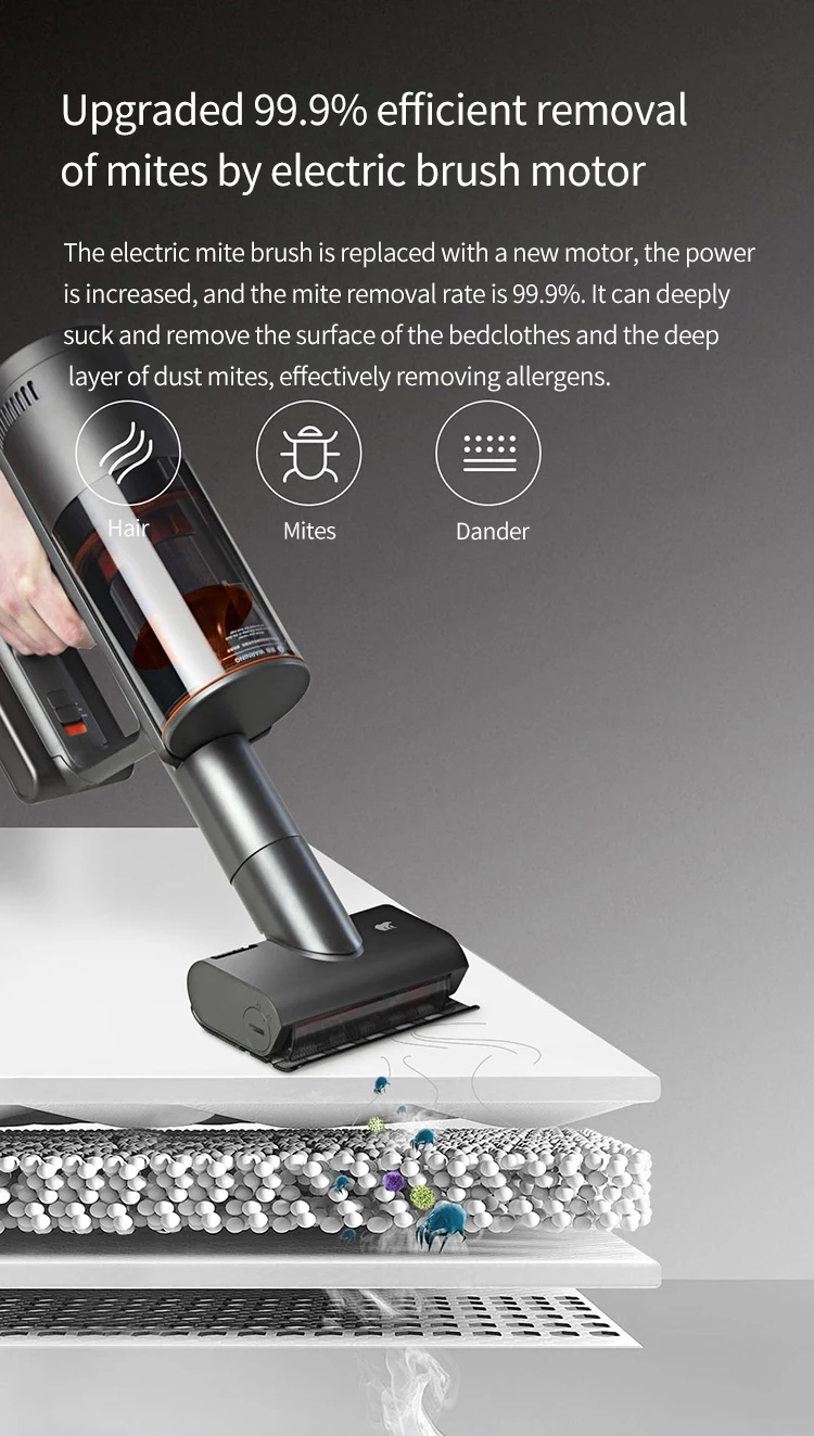 ● Щетка для удаления клещей на глубине 99.9%, встроенная самоуправляемая щетка для удаления клещей с поверхности матраса и глубокого слоя