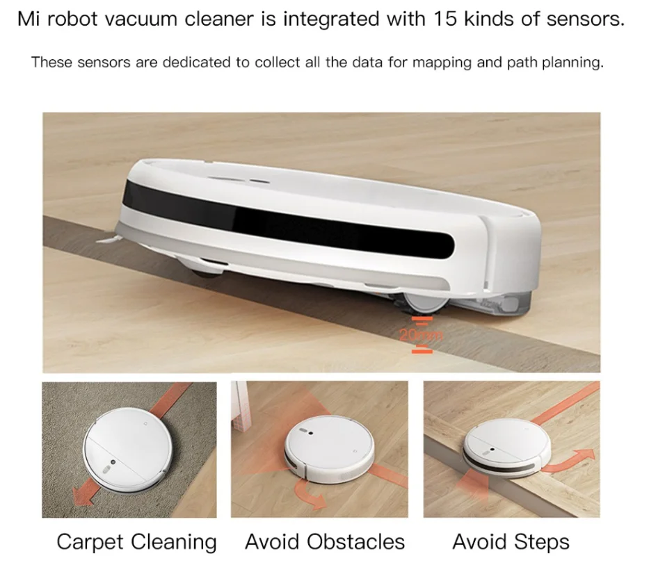Робот-пылесос Mi интегрирован с 15 видами датчиков. Эти датчики предназначены для сбора всех данных для сопоставления и планирования пути.