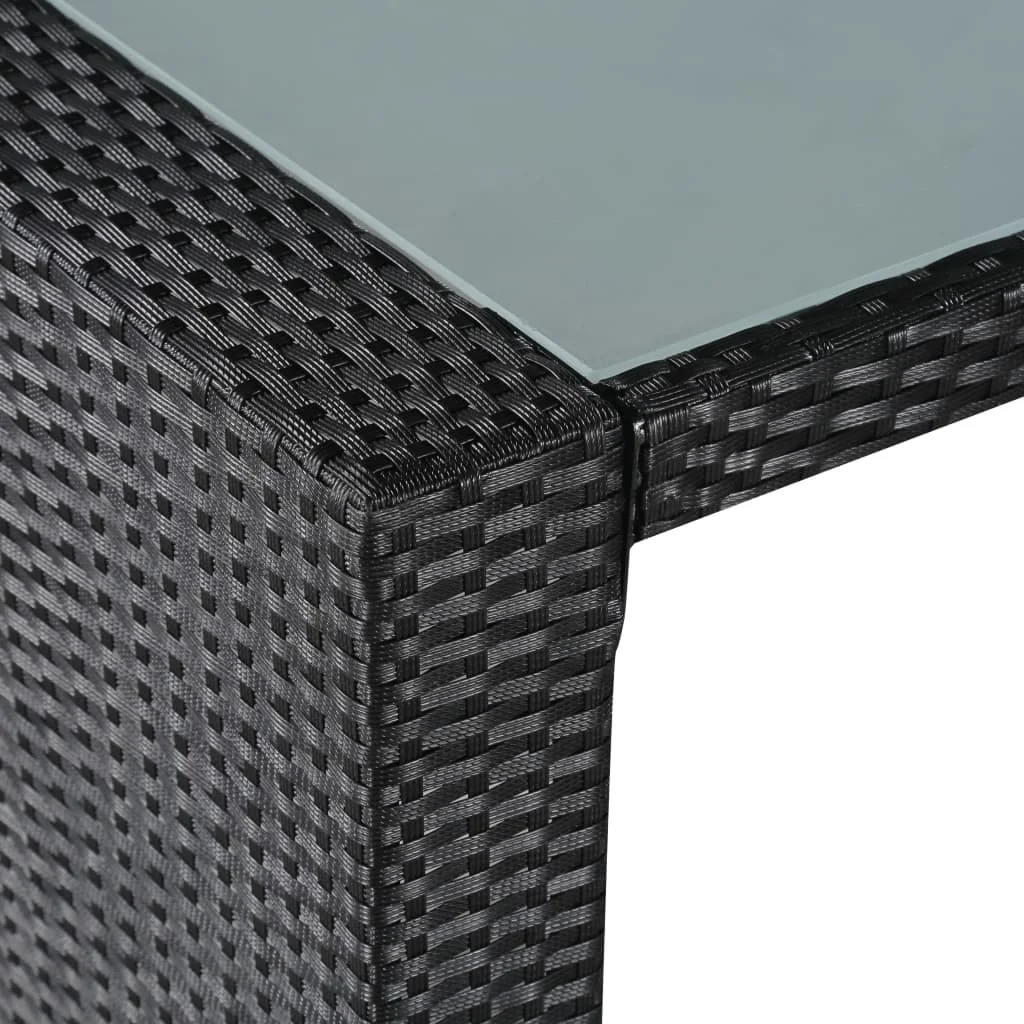 Цвет плетеной смолы: черный Цвет подушки: белый Материал: тканая смола (полиэтилен) + стеклянная столешница + стальная рама с порошковым покрытием Материал наволочки: 100% полиэстер Толщина подушки: 4 см Размеры стола: 120x80x110 см (Д x Ш x В) Размеры табурета: 40x40x80 см (Ш x Г x В) Доставка включает в себя: 1 х барный стол 4 x барный стул 4 x подушка сиденья