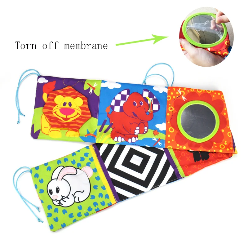 Features: Giraffe and lion's mane filled snap of his fingers, a catch up will be rustling; Sunflower is actually safe side mirror, to meet the baby's curiosity Monkeys built a BB device, it will pinch the BB ring Sheep body is fluffy; Benefits: Composed of a variety of colors, colorful, well stimulate the baby's vision, promote visual development. different fabrics exercise your baby's tactile ability. Material: Cloth Color:as pictures shows Size:96*15cm Tail cloth book :22*12cm Package: 1 Pcs