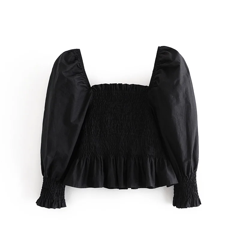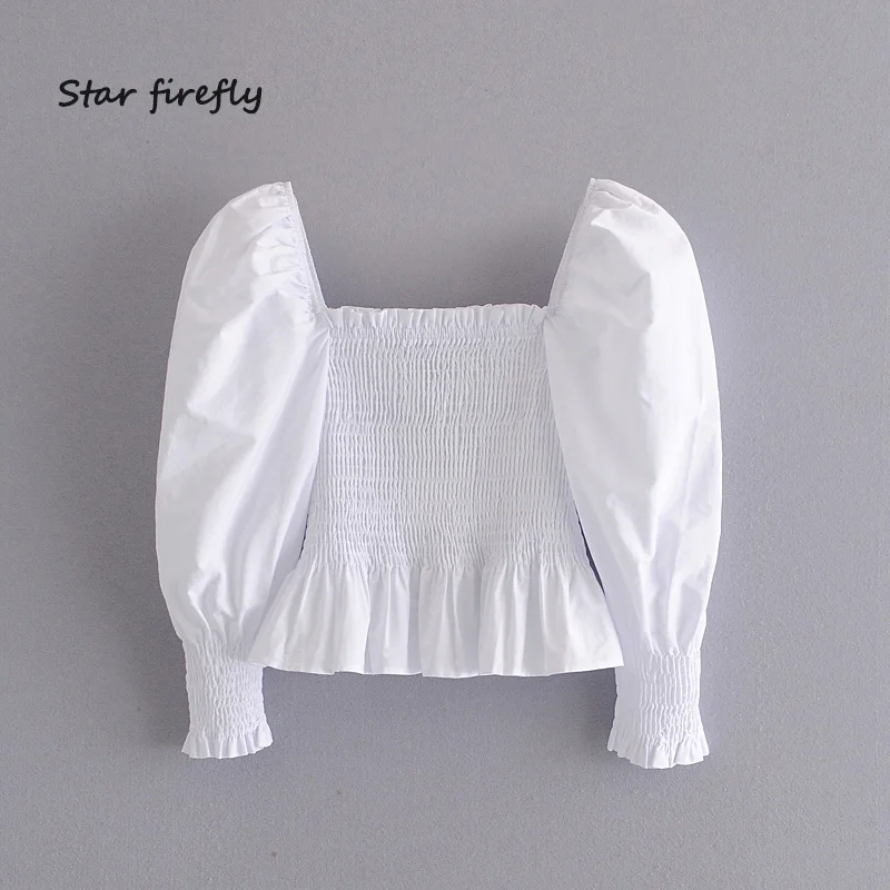 Название продукта: модная женская рубашка Za Star firefly, Повседневная приталенная рубашка с квадратным воротником и пышными рукавами, элегантная стрейчевая блузка из поплина на осень 2020
