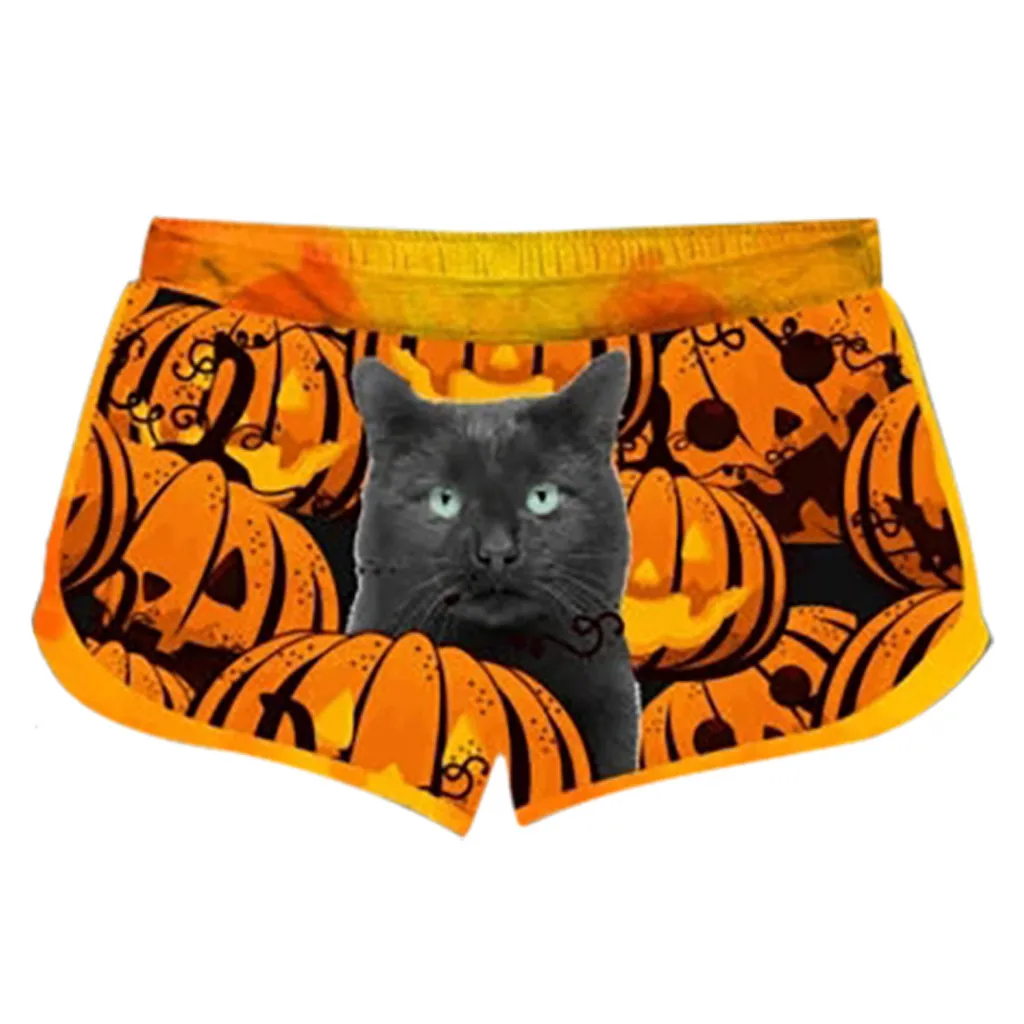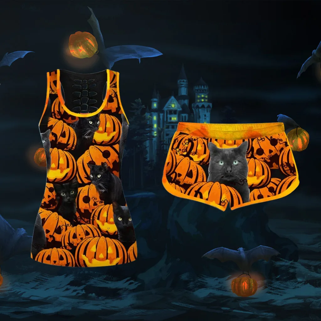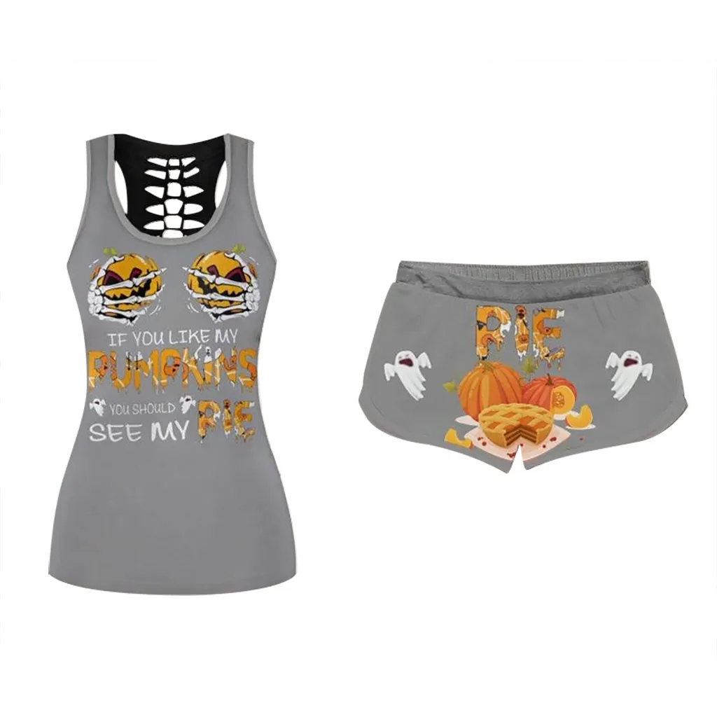 Женский комплект с футболкой с короткими рукавами и принтом; Комплект с шортами на завязках на Хэллоуин
