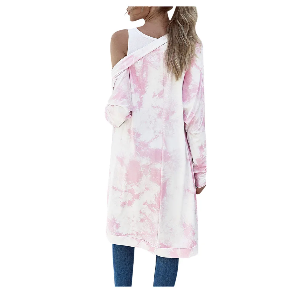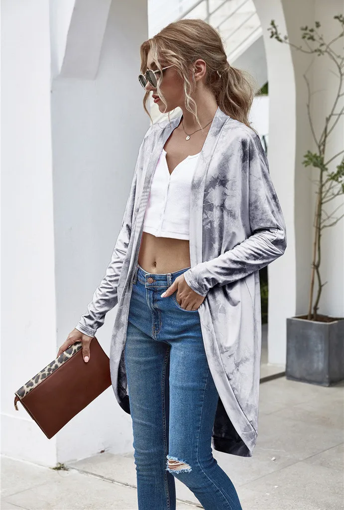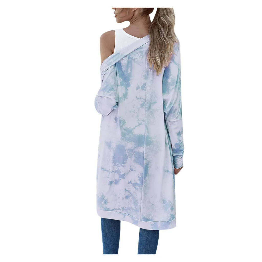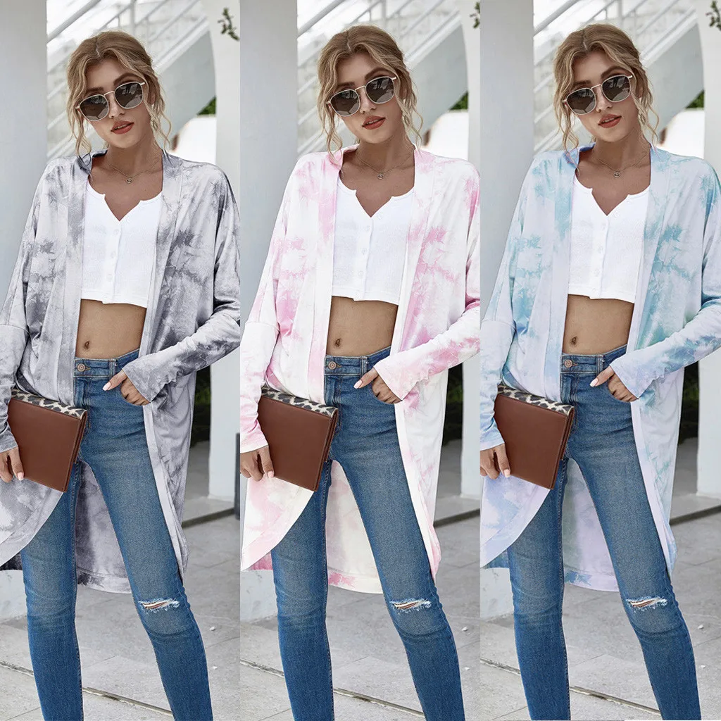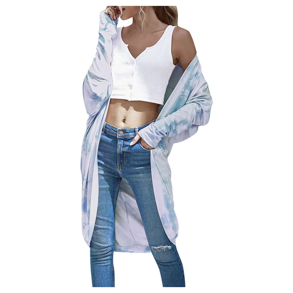 Женский свободный кардиган с длинными рукавами и принтом в виде галстука-красителя