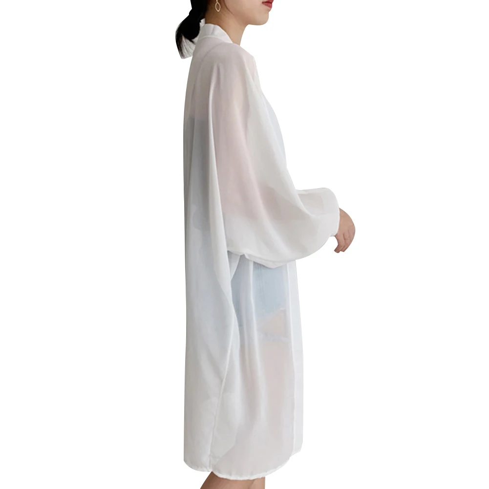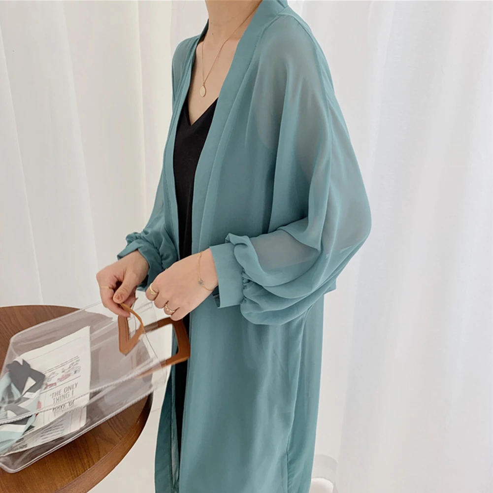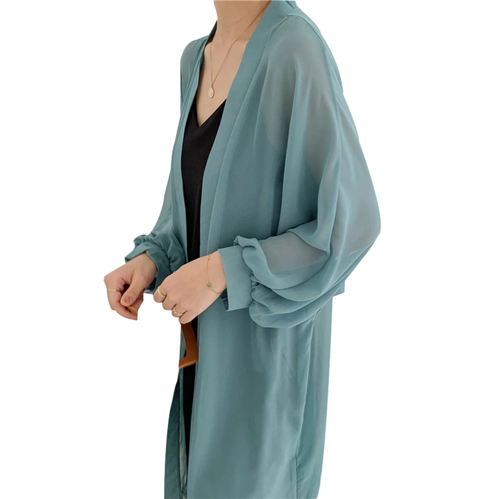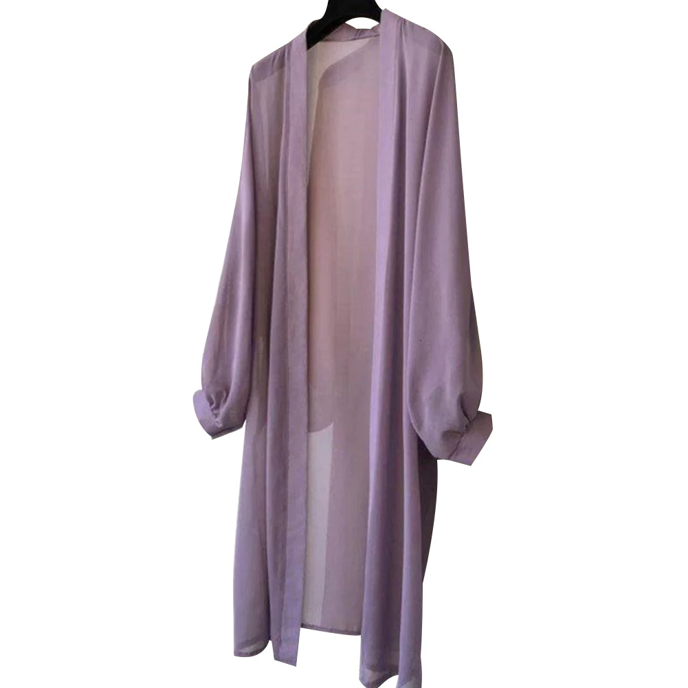 Женский однотонный Кардиган с длинным рукавом для отпуска, Пляжная Солнцезащитная одежда, рубашка