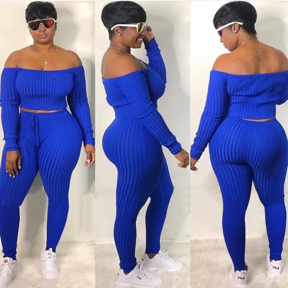 Women Clothes 2019 Summer Sets 2 Piece Women Set Top Fashion Woman Off Shoulder Crop Top Long Pants Suit Matching Plus Size