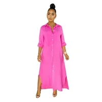 Clothes for Women 2021 Long Linen Dress Three-Quarter Sleeve Button Up Shirt Dress Fashion Maxi African Dresses Plus Size