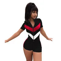 Black Jumpsuits Shorts Fashion Zipper V Neck Shrot Sleeve Ladies Romper Patchwork Casual Short Rompers Womens Jumpsuit Overalls