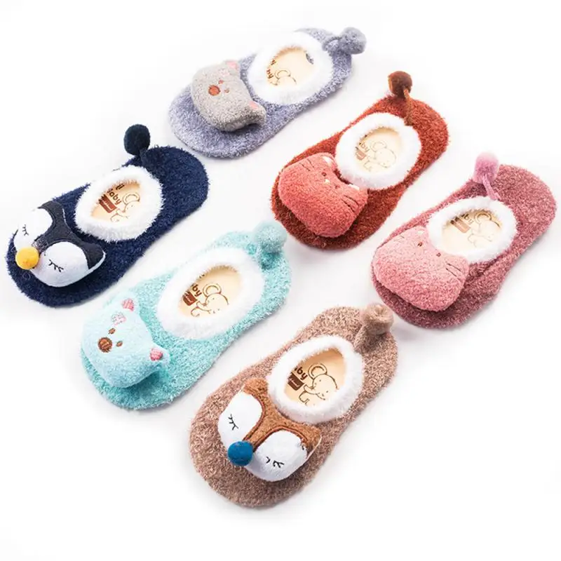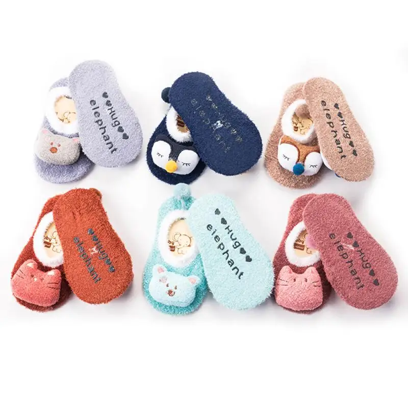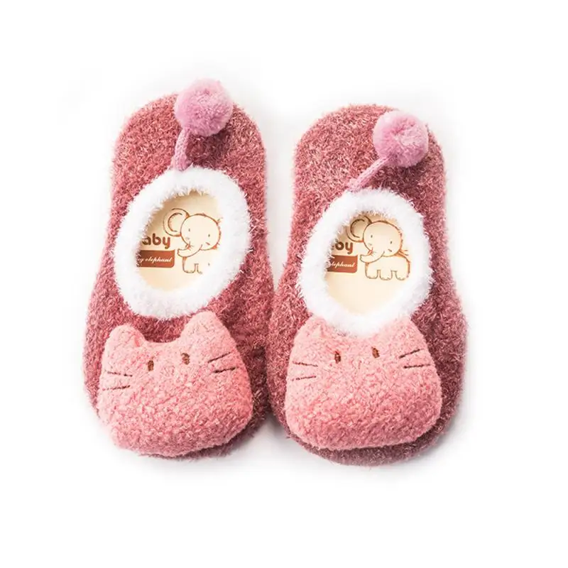 От 0 до 5 лет коралловые бархатные мягкие носки-тапочки с рисунком животных для мальчиков и девочек