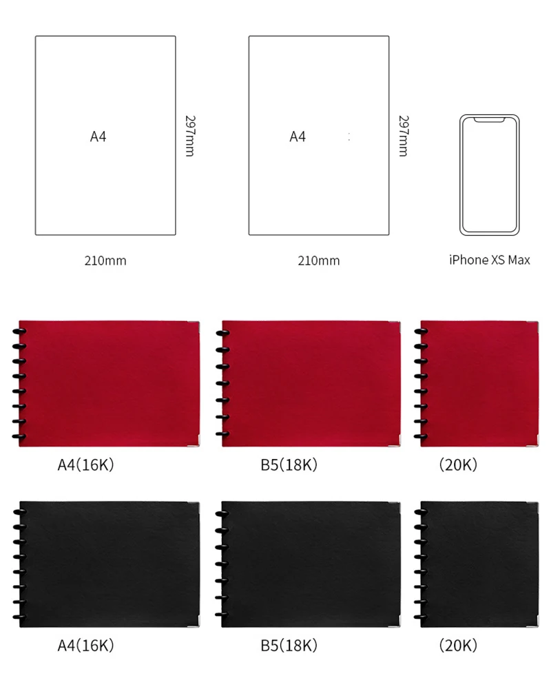 Размер: 20K страниц = 190x210 мм, страницы B5 = 250x188 мм, страницы A4 = 285x205 мм