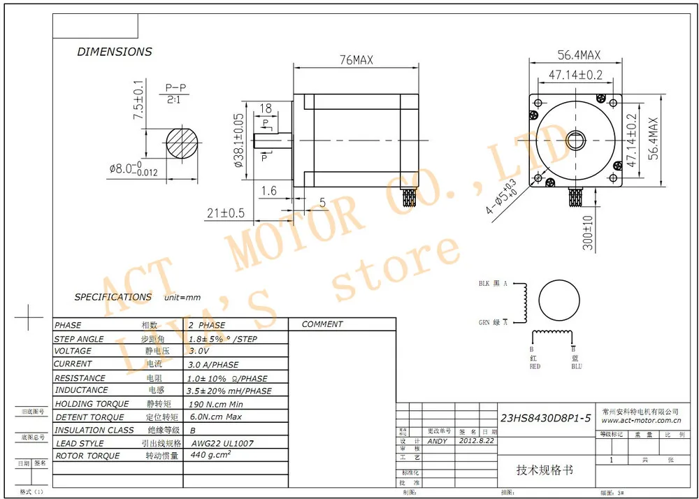 Диаметр вала 8 мм, круглый вал 4-свинец 3.0A