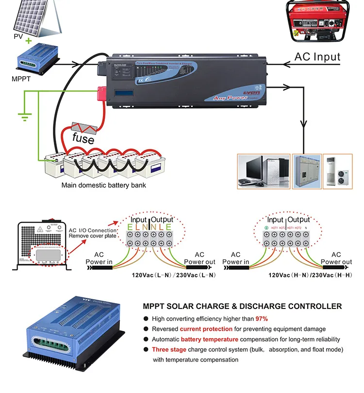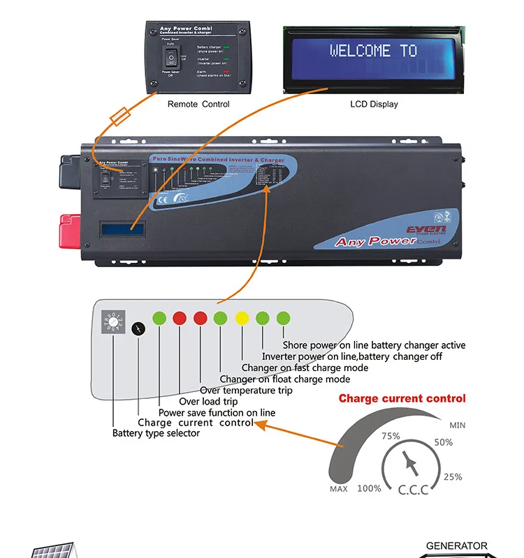 Синусоидальный инвертор, он также имеет 17 сигналов тревоги/предупреждения для более легкой работы и устранения неисправностей, и способность