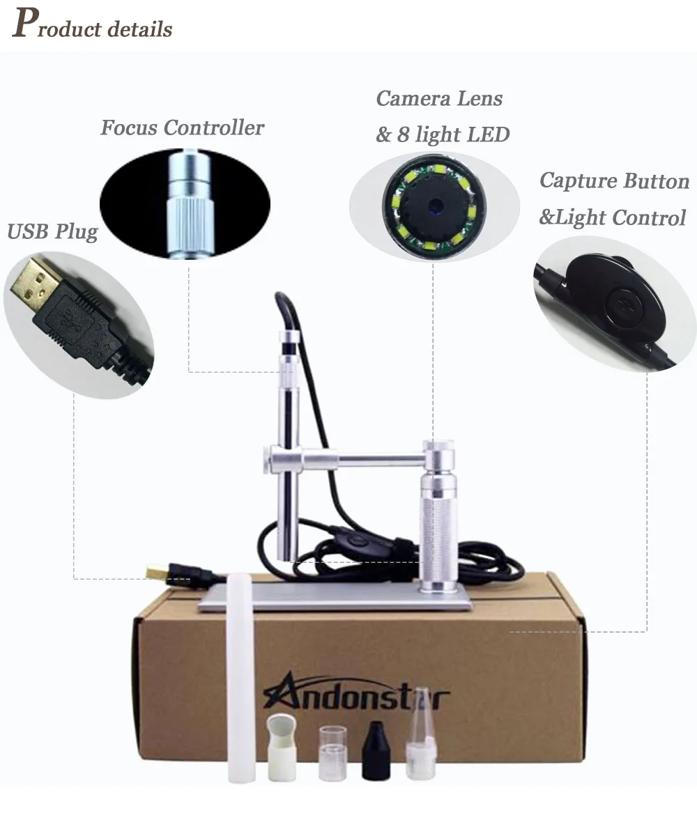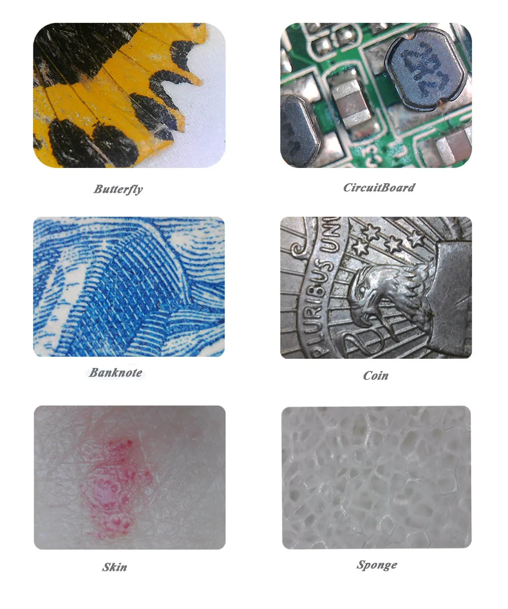 Как микроскоп USB, он может увеличивать марки, монеты, антиквариат, насекомые, электрические цепи, машины, ткани, продукты питания, украшения, И т. Д., а также может помочь больным с дефектами зрения увеличить небольшой текст для чтения.