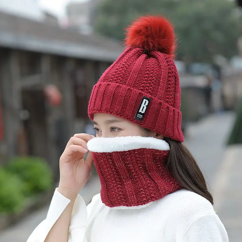 Зимняя теплая шапка, шарф, набор, шапка и воротник, набор для женщин, мужчин, шапочки, размер: 55-60 см, гибкие